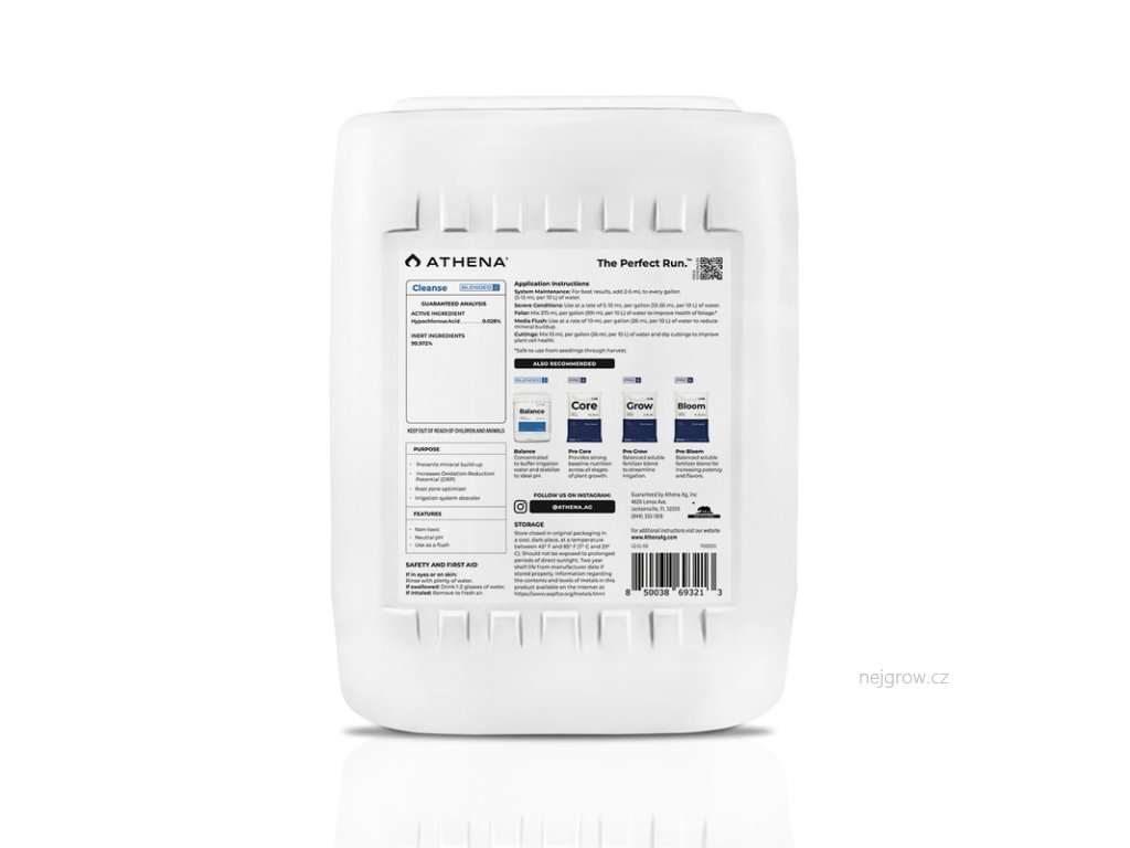 Athena Cleanse se vyrábí z kyseliny chlorné. Tato jemná kyselina se získává ze soli a patentovaného elektrochemického procesu zpracování. kterou lze použít k redukci minerálního vodního kamene v zavlažovacích systémech.
