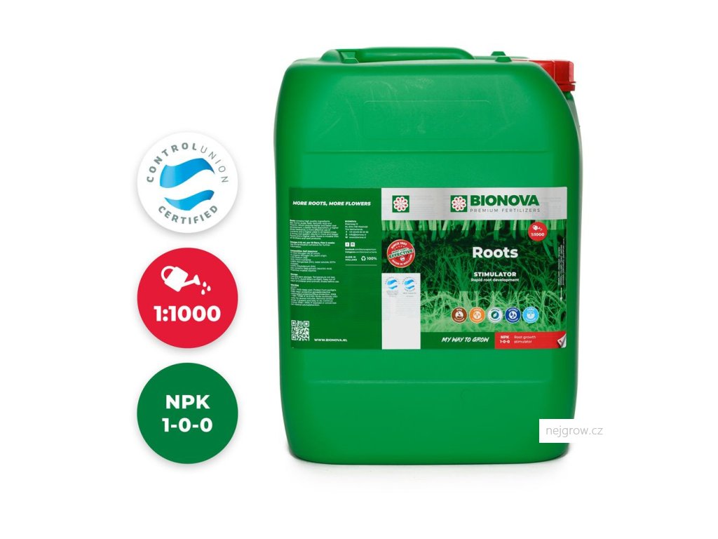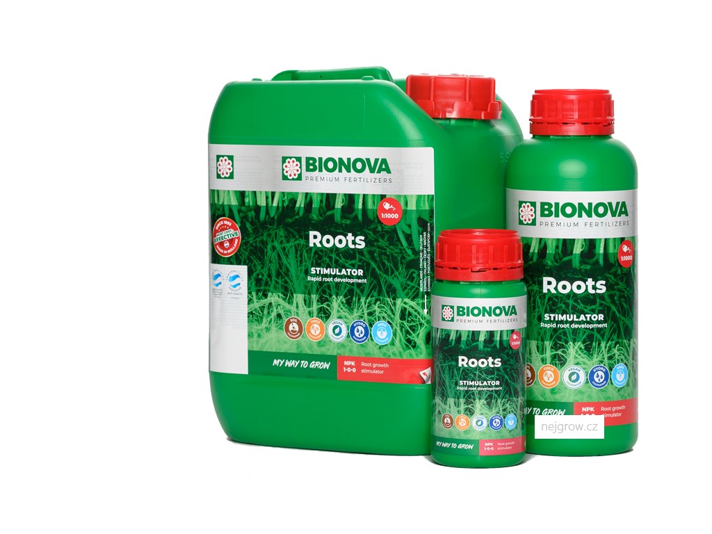 Bionova Roots se skládá z následujících hlavních složek: Kyseliny huminové (zlepšuje vstřebávání kyslíku, urychluje vývoj kořenů a buněk a urychluje transport iontů), Kelp (hojení ran a chlorózy, zvyšuje vývoj chlorofylu a větší rozvoj kořenových vlásků), kyselina askorbová (vitamin C), thiamin (vitamin B1), myo-inositol (známý také jako vitamin B7, pro tvorbu buněčných stěn), L-glycin (aminokyselina, pro lepší odolnost a růst).