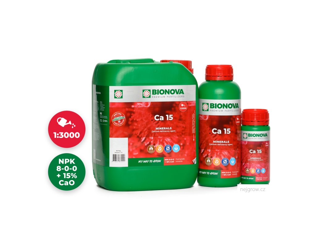 Ca 15 by se měl aplikovat při výskytu nedostatku a/nebo k posílení buněčných stěn. Ca 15 je mísitelný se všemi hnojivy, stimulátory, minerály, univerzálními hnojivy a substráty Bionova. Ca 15 lze použít k zavlažování i jako listový postřik.