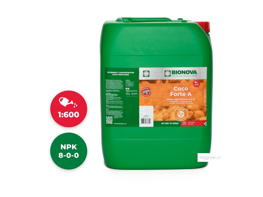 Coco Forte A+B je použitelný od prvního týdne růstu až do týdne před sklizní. Proplachování je povinné. Bionova Coco Forte A+B lze použít k zavlažování. Coco Forte A+B lze použít ve spojení se všemi stimulátory, minerály, univerzálními hnojivy a substráty Bionova.