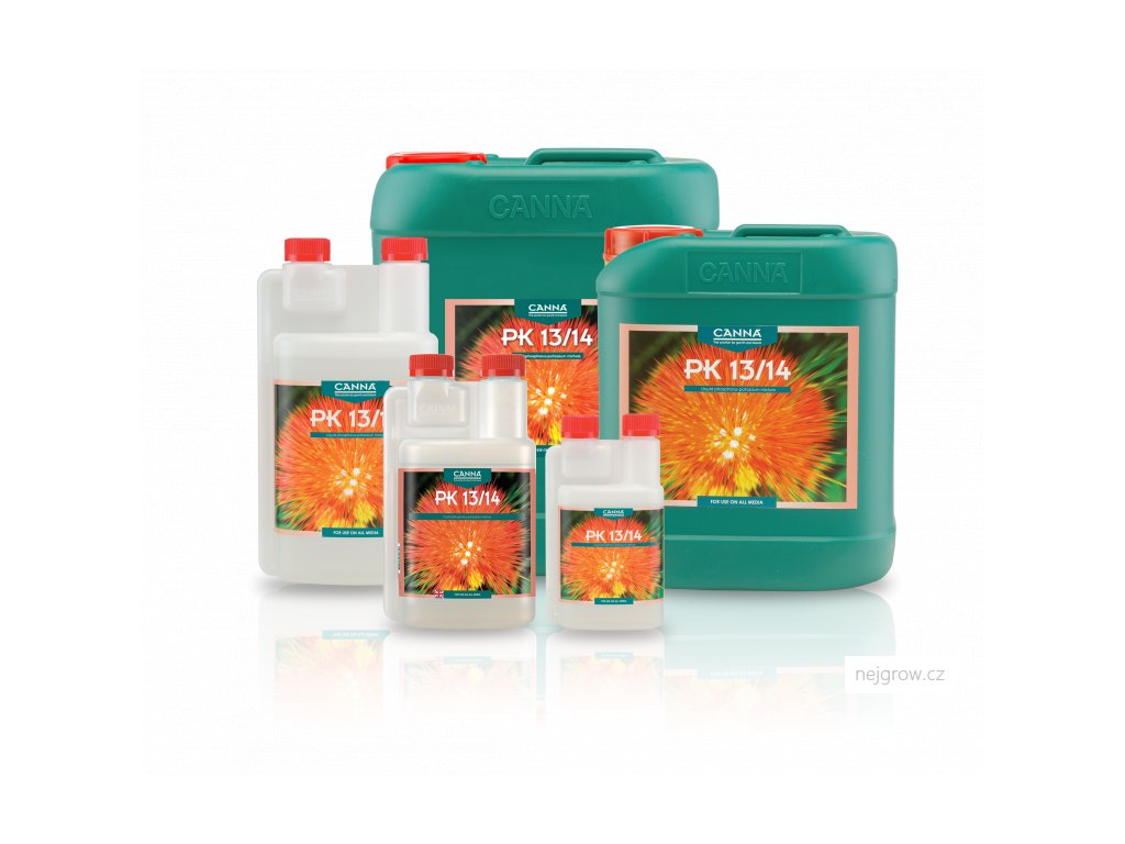PK 13/14 je vysokojakostní směs fosforu a draslíku, který je přidáván během fáze květu. Oba prvky hrají velkou roli během fáze květu u rychle rostoucích rostlin. Díky speciálnímu výrobnímu procesu byla CANNA úspěšná ve skombinování čistého fosforu a draslíku ve velmi vysokých koncentracích a to dělá PK 13/14 přímo a rychle dostupnou.