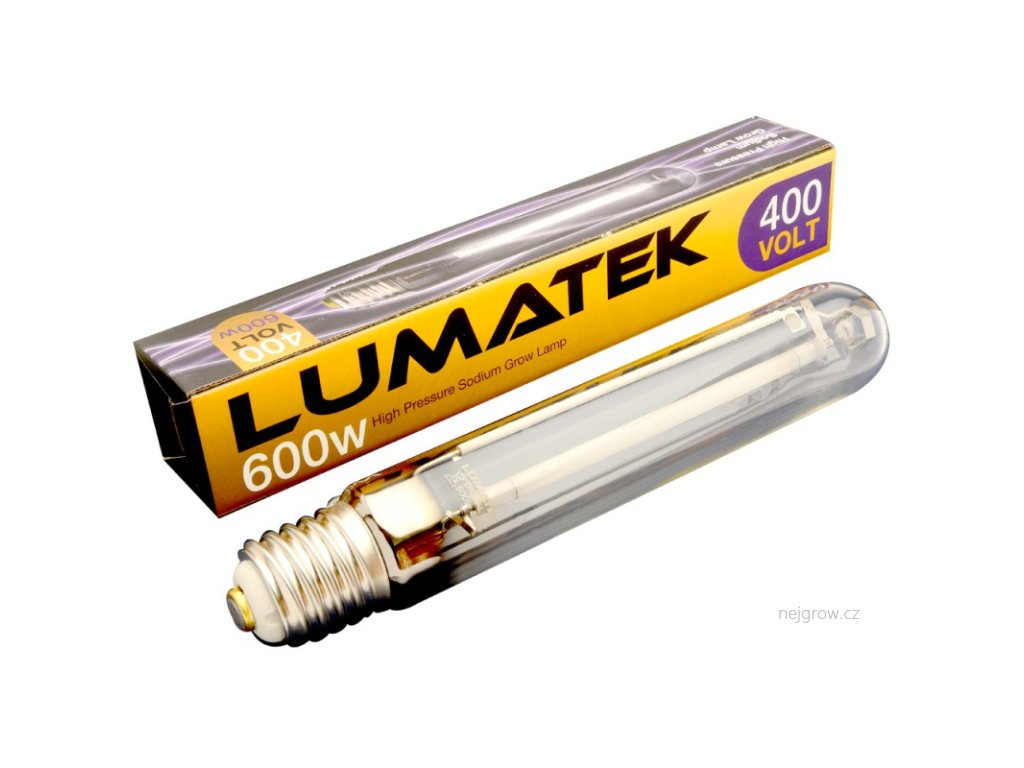 Kvalitní výbojka od společnosti Lumatek Dual Spectre HPS 600 W (400V). Jedná se o vysokofrekvenční výbojky využívající vyšší vstupní napětí (400V) pro ještě větší výkonnost a efektivitu. Transformace napětí probíhá v předřadníku Lumatek ULTIMATE PRO. V případě napájení proudem o napětí 400V se lampa dostává na operační frekvenci 120 KHz (při 240V je frekvence 90 KHz), což znamená o 25% větší svítivost. Tyto výbojky jsou vysoce kvalitní a jsou určené jak pro fázi růstu, tak i květu. Výbojky doporučujeme používat pouze s originálními regulovatelnými předřadníky Lumatek. Tím je zajištěna vysoká kompatibilita a nízké riziko poškození výbojky. Provedením jsou výbojky robustnější než běžná svítidla. Životnost výrobku je minimálně 24000 hodin provozu.