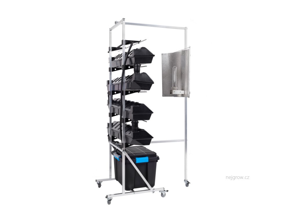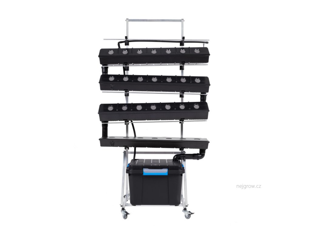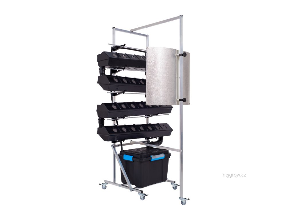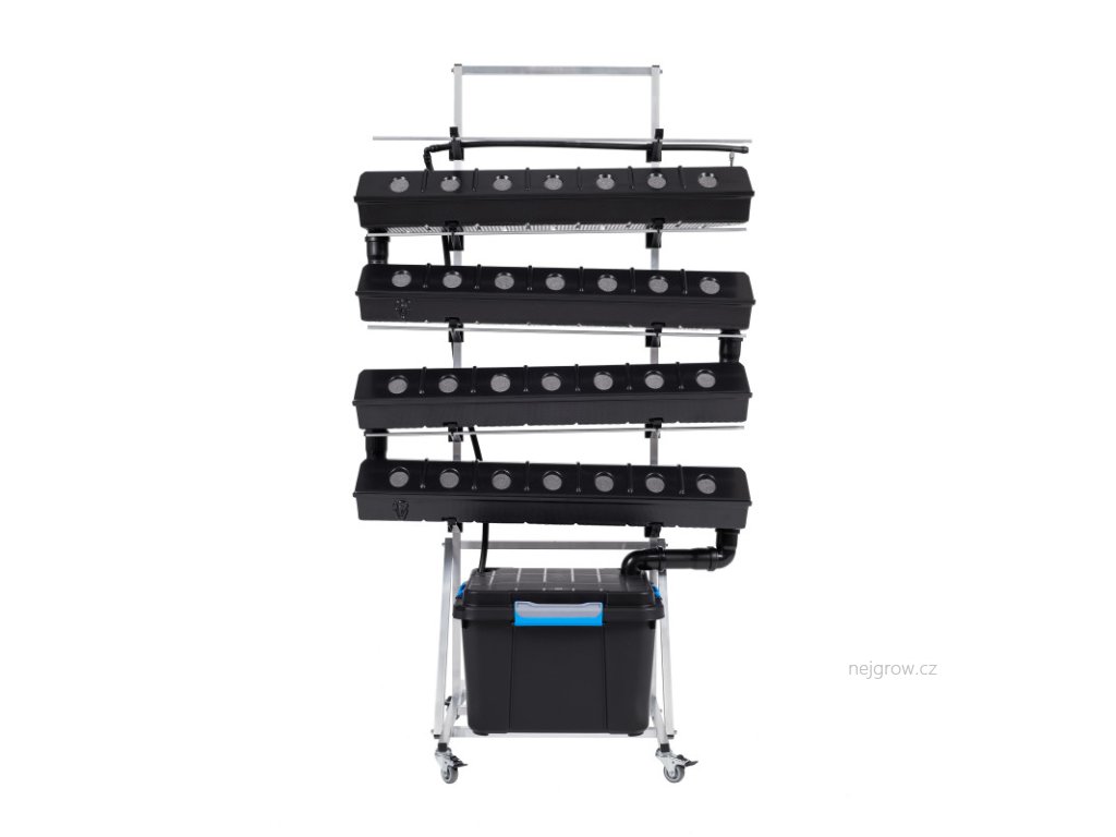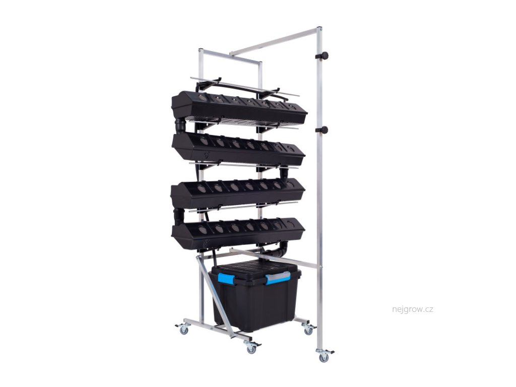 Vertikální hydroponické zařízení využívající techniku živného filmu (NFT-Nutrient film technique) se samotížným protékáním živné vody k pěstovaným rostlinám. V tomto systému není žádné médium, kořeny se pokládají přímo do vody, která protéká díky drenážnímu systému po celé ploše každé po sobě jdoucí pěstební nádoby, tím dochází také k okysličení a to vše bez přístupu světla (eliminace tvorby řas). Tímto provedením je zaručen rovnoměrný přísun živin ke každé rostlině v systému.